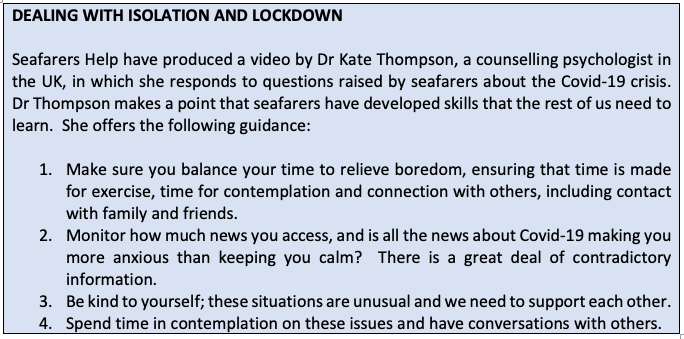 These circumstances are not new to seafarers and there is much that we can learn from them in coping with stress and anxiety.